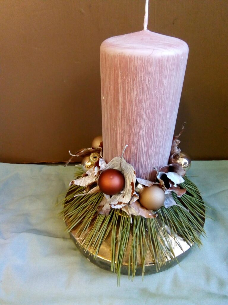Výška svícnu včetně svíčky 22 cm, průměr 15 cm.